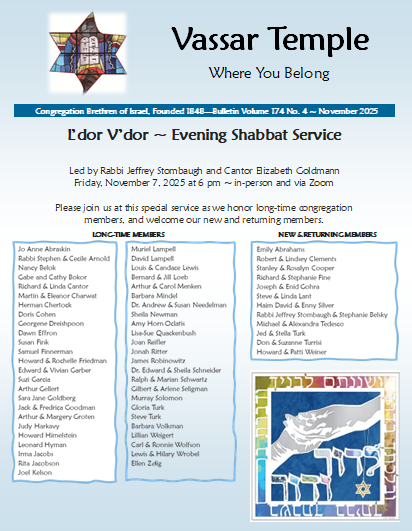 Led by Rabbi Jeffrey Stombaugh and Cantor Elizabeth Goldmann